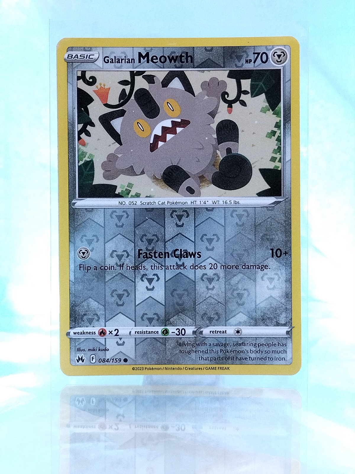 Galarian Meowth from the Pokémon Crown Zenith expansion.View Crown Zenith expansion